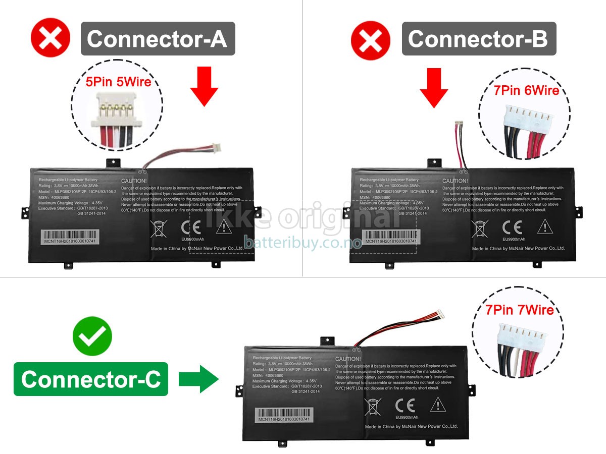 A: I produktkompatibilitetsoversikten vår, kan du sjekke om Medion Akoya E2227T(MD 60758) batteri passer til din laptop. Ved å klikke på "større bilder", Sikre på at Medion Akoya E2227T(MD 60758) batteri tilpasser til Medion datamaskinen. I tillegg, burde du sjekke om spenningen (verdien) er den samme som den gamle batteri din. For mer detaljer, kan du klikke på Hvordan finner jeg riktig batteri til laptopen min?