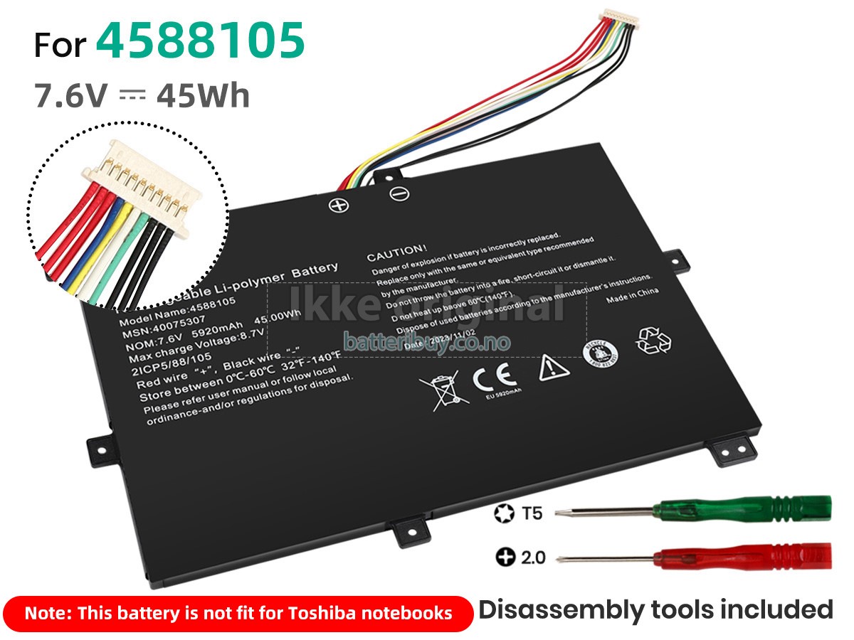 Before placing an order please confirm that your old battery model is 【4588105】 and not is 【4588105-2S】, this battery is not compatible with Toshiba Dynabook notebooks.