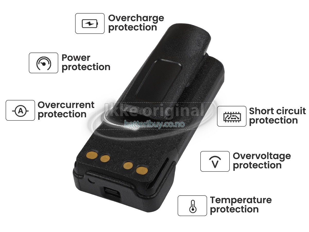 Med førsteklasses kvalitetsforsikring, batteri til Motorola PMNN4409AR kan beskytte av spenning, kortslutning, ladetid og ESD osv. Hvert Motorola PMNN4409AR batteri has bestått en mengde sikkerhetssertifiseringer, som CE, UL, ROHS, ISO9001/9002. Det vil bli testet grundig av teknikerne våre før det sendes til dine hender. Vi vil prøve vårt beste for å velge et høykvalitets batteri til Motorola PMNN4409AR.