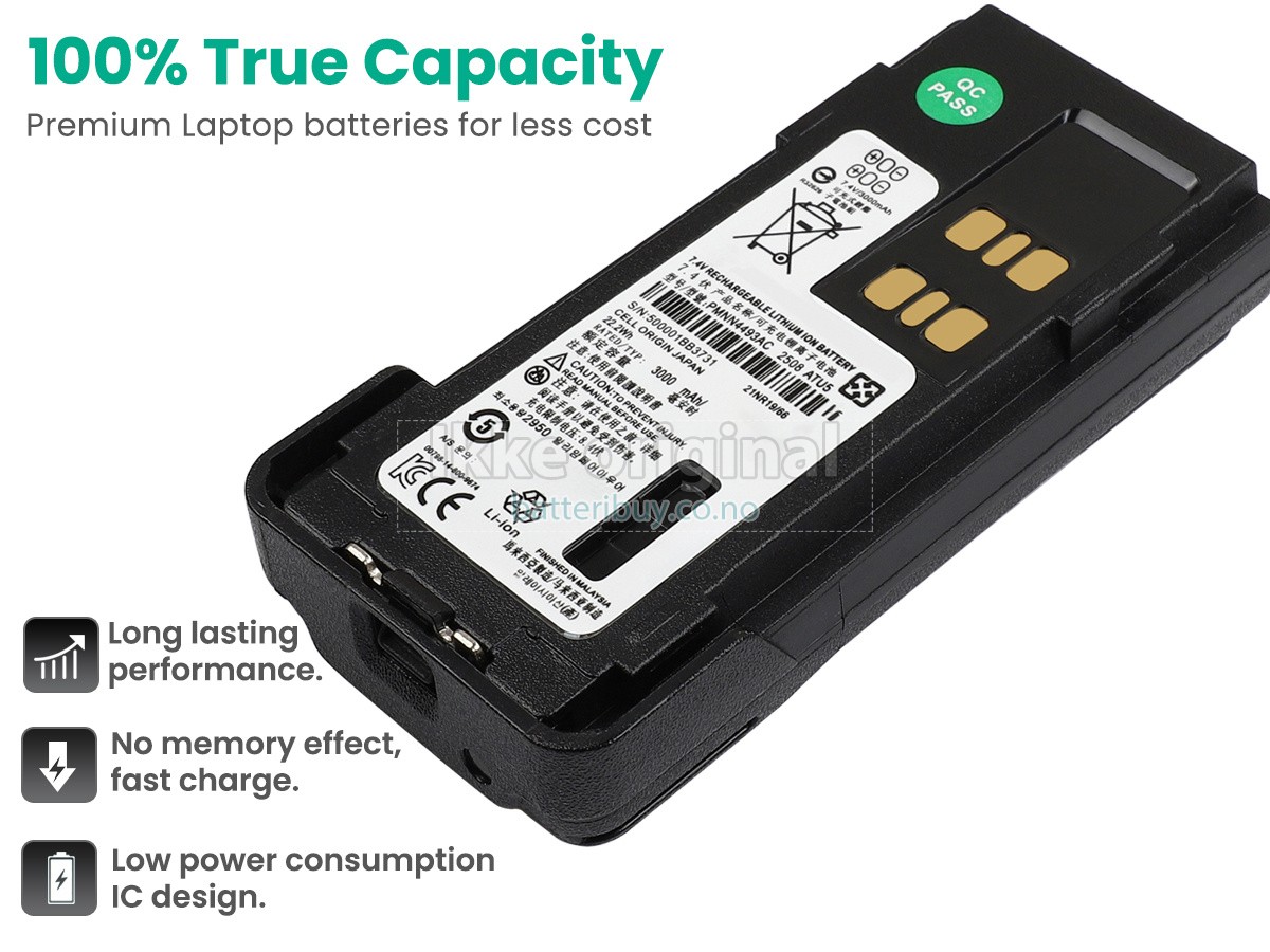 Erstatnings batteri til Motorola PMNN4424AR fra BatteriBuy.co.no er ditt beste valg. Vi tilbyr høykvalitets batterier til Motorola PMNN4424AR til en lavere pris. Våre Motorola PMNN4424AR batterier kan lades over minst 600 sykluser. Det er laget med et ABS plastbelegg og den originale IC beskyttelseschipen, som gir deg en ny opplevelse av utmerket varighet.