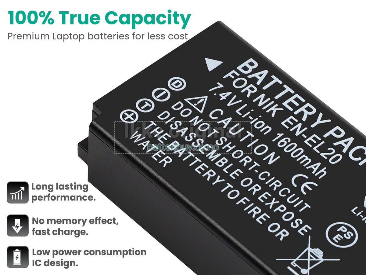Erstatnings batteri til Nikon EN-EL20A fra BatteriBuy.co.no er ditt beste valg. Vi tilbyr høykvalitets batterier til Nikon EN-EL20A til en lavere pris. Våre Nikon EN-EL20A batterier kan lades over minst 600 sykluser. Det er laget med et ABS plastbelegg og den originale IC beskyttelseschipen, som gir deg en ny opplevelse av utmerket varighet.
