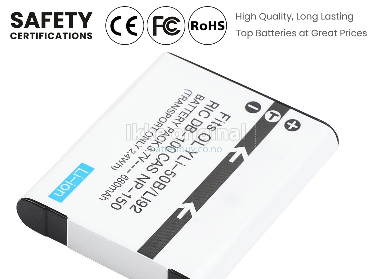 Erstatnings batteri til Olympus LI-50B fra BatteriBuy.co.no er ditt beste valg. Vi tilbyr høykvalitets batterier til Olympus LI-50B til en lavere pris. Våre Olympus LI-50B batterier kan lades over minst 600 sykluser. Det er laget med et ABS plastbelegg og den originale IC beskyttelseschipen, som gir deg en ny opplevelse av utmerket varighet.