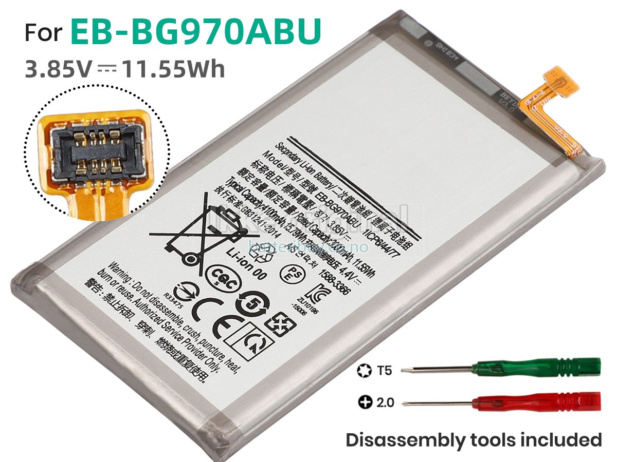 Erstatnings batteri til Samsung EB-BG970ABA fra BatteriBuy.co.no er ditt beste valg. Vi tilbyr høykvalitets batterier til Samsung EB-BG970ABA til en lavere pris. Våre Samsung EB-BG970ABA batterier kan lades over minst 600 sykluser. Det er laget med et ABS plastbelegg og den originale IC beskyttelseschipen, som gir deg en ny opplevelse av utmerket varighet.