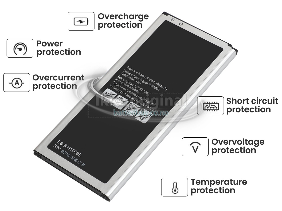 Erstatnings batteri til Samsung J510F fra BatteriBuy.co.no er ditt beste valg. Vi tilbyr høykvalitets batterier til Samsung J510F til en lavere pris. Våre Samsung J510F batterier kan lades over minst 600 sykluser. Det er laget med et ABS plastbelegg og den originale IC beskyttelseschipen, som gir deg en ny opplevelse av utmerket varighet.