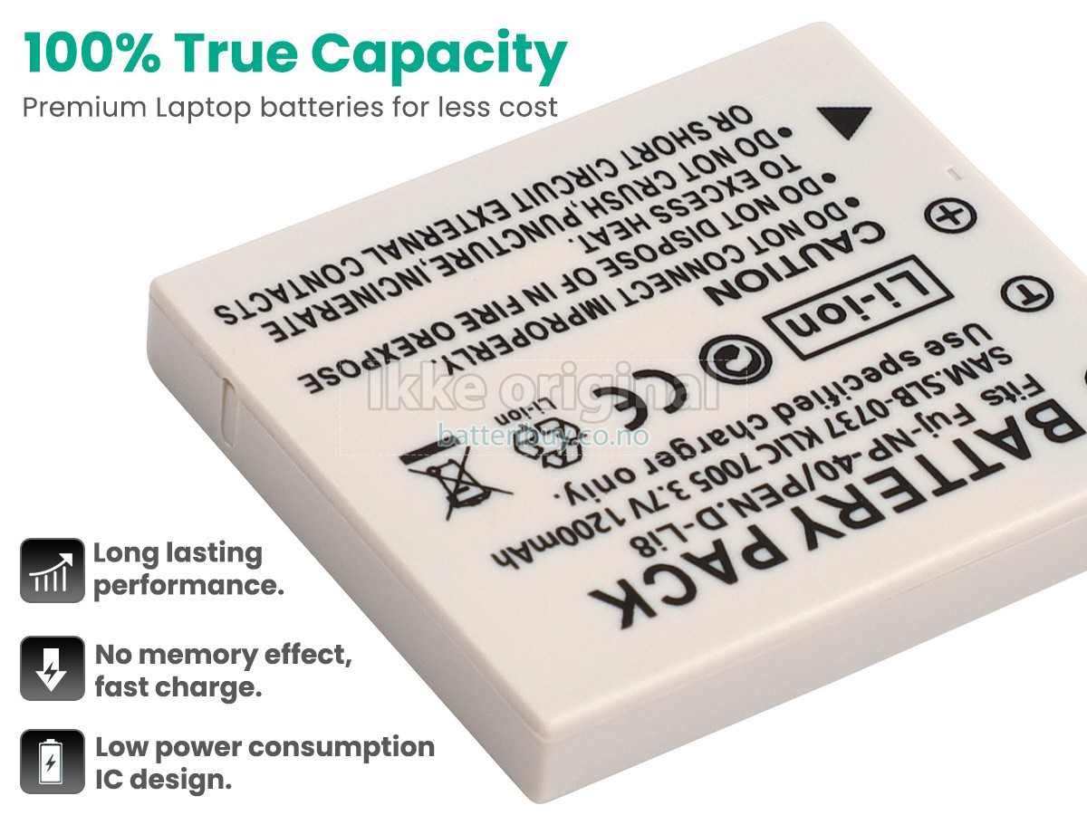 Med førsteklasses kvalitetsforsikring, batteri til Samsung KODAK KLIC-7005 kan beskytte av spenning, kortslutning, ladetid og ESD osv. Hvert Samsung KODAK KLIC-7005 batteri has bestått en mengde sikkerhetssertifiseringer, som CE, UL, ROHS, ISO9001/9002. Det vil bli testet grundig av teknikerne våre før det sendes til dine hender. Vi vil prøve vårt beste for å velge et høykvalitets batteri til Samsung KODAK KLIC-7005.