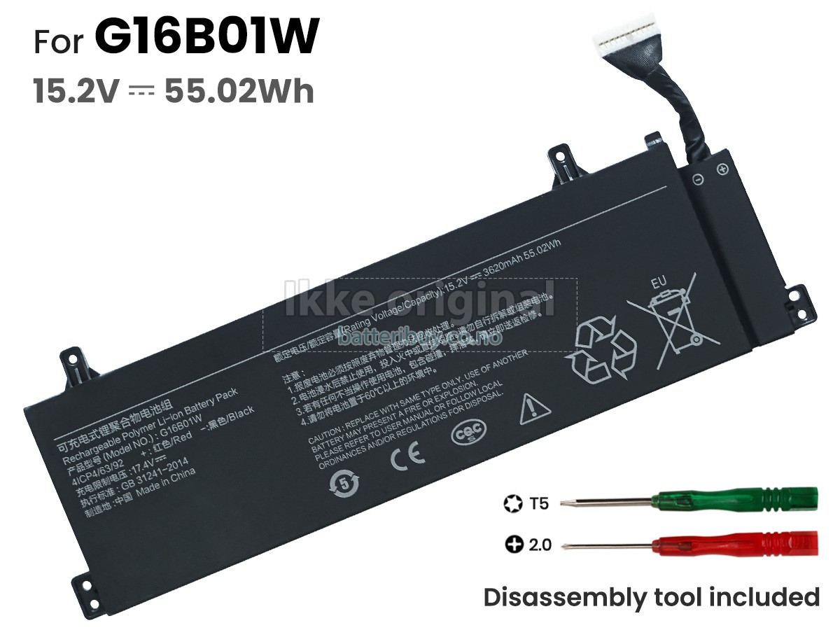 Erstatnings batteri til XiaoMi G16B01W fra BatteriBuy.co.no er ditt beste valg. Vi tilbyr høykvalitets batterier til XiaoMi G16B01W laptoper til en lavere pris. Våre XiaoMi G16B01W batterier kan lades over minst 600 sykluser. Det er laget med et ABS plastbelegg og den originale IC beskyttelseschipen, som gir deg en ny opplevelse av utmerket varighet.