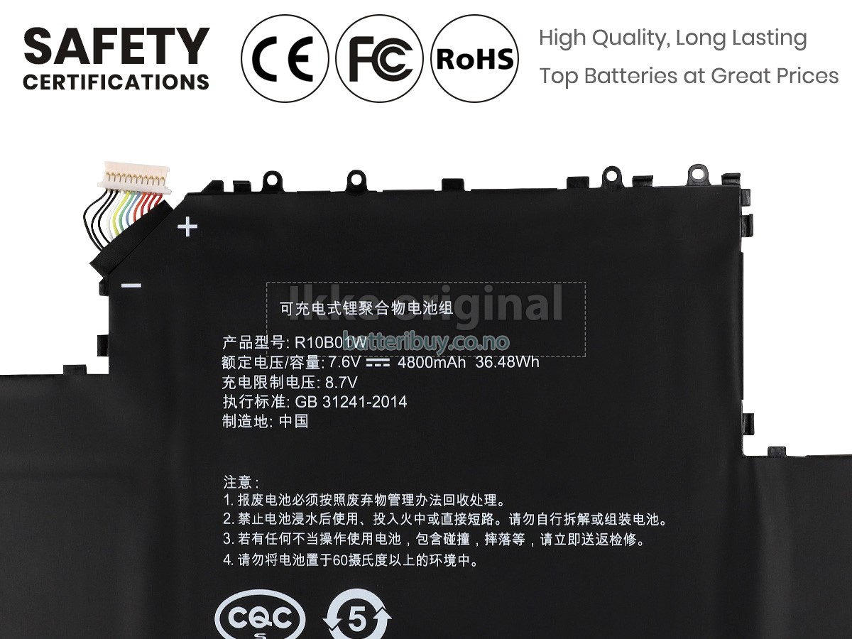 Med førsteklasses kvalitetsforsikring, batteri til XiaoMi R10B01W kan beskytte av spenning, kortslutning, ladetid og ESD osv. Hvert XiaoMi R10B01W laptop batteri has bestått en mengde sikkerhetssertifiseringer, som CE, UL, ROHS, ISO9001/9002. Det vil bli testet grundig av teknikerne våre før det sendes til dine hender. Vi vil prøve vårt beste for å velge et høykvalitets batteri til XiaoMi R10B01W laptop.