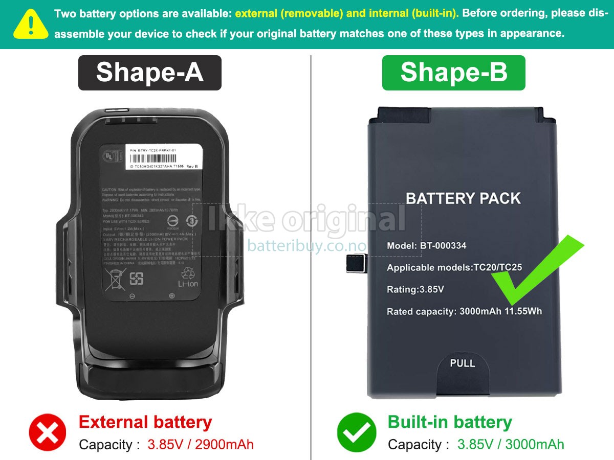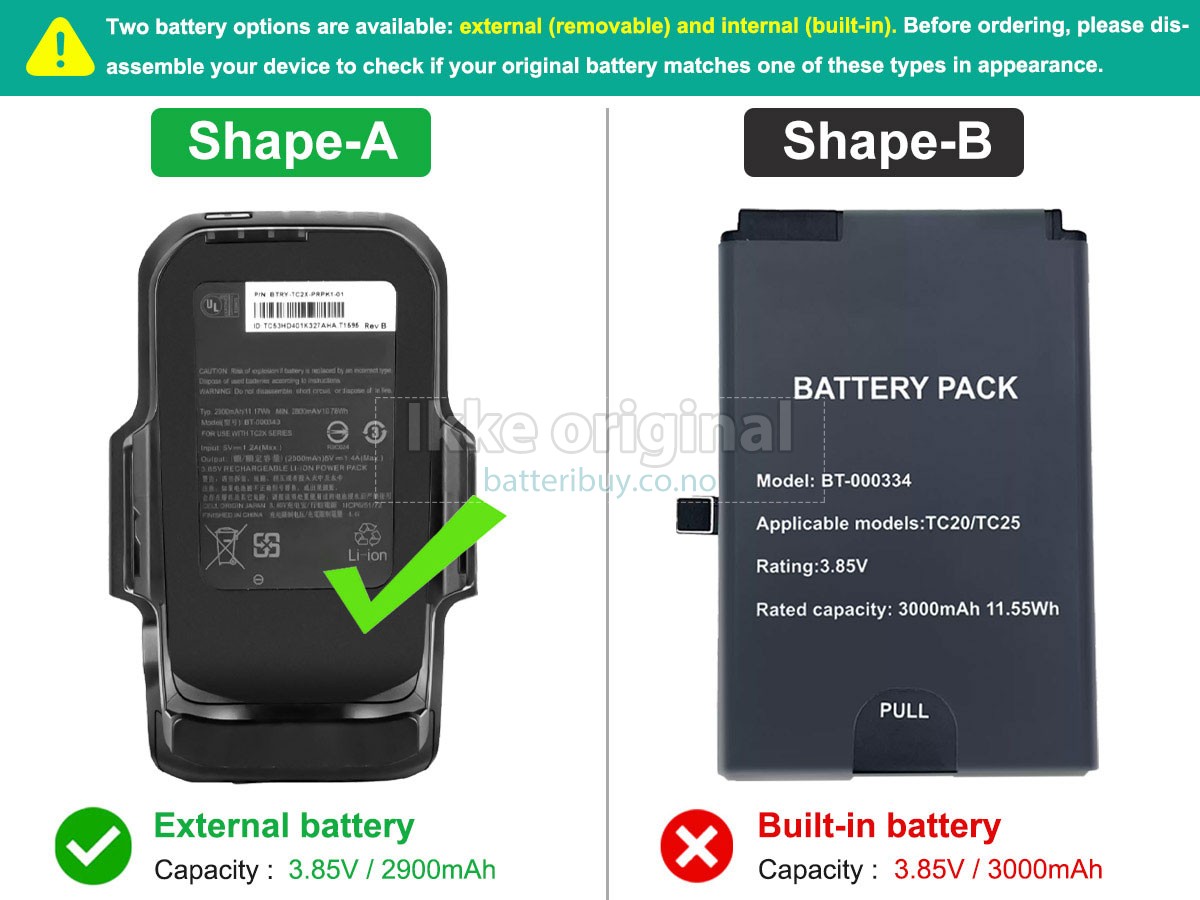 A: I produktkompatibilitetsoversikten vår, kan du sjekke om Zebra TC25 batteri passer til din. Ved å klikke på "større bilder", Sikre på at Zebra TC25 batteri tilpasser til Zebra. I tillegg, burde du sjekke om spenningen (verdien) er den samme som den gamle batteri din.
